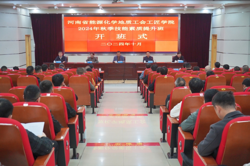 10月21日上午,河南省能源化學地質工會(hui) 工匠學院秋季技能素質提升班開班式在平頂山工業(ye) 職業(ye) 技術學院舉(ju) 行。省能源化學地質工會(hui) 主席張建山,平頂山工業(ye) 職業(ye) 技術學院校長李樹偉(wei) ,中國平煤神馬集團工會(hui) 副主席趙庚學、王建勳出席開班式,中國平煤神馬集團及該校相關(guan) 部門負責人,以及來自全省能源化學地質係統各單位的學員120人參加了開班式,開班式由省能源化學地質工會(hui) 副主席趙曼主持。