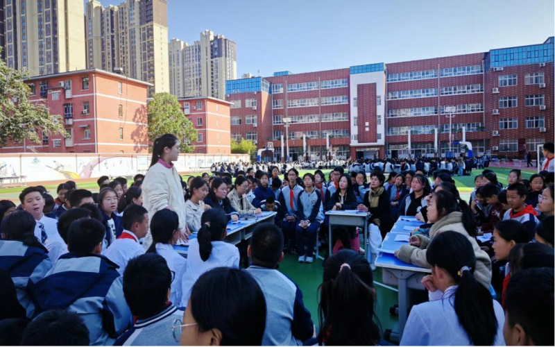 10月22日下午,鄭州市第七十一中學開展“雄辯學科 智論世界”師生主題辯論賽,近2000名師生齊聚操場。在學校黨(dang) 總支領導下,辯論賽圍繞學科素養(yang) 提升,旨在激發學生的思維活力,增進師生間的交流與(yu) 互動,營造校園文化氛圍,是一場激蕩智慧的思維狂潮和奇妙之旅。