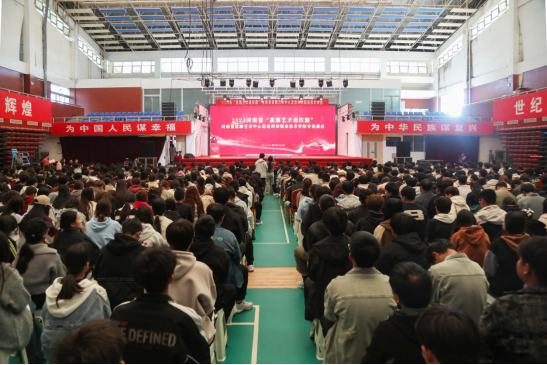 為(wei) 深入學習(xi) 貫徹黨(dang) 的二十大和黨(dang) 的二十屆三中全會(hui) 精神,引領當代大學生弘揚優(you) 秀民族文化,提高藝術素養(yang) ,根據kaiyun体育登入口、河南省文化與(yu) 旅遊廳《關(guan) 於(yu) 開展2024年高雅藝術進校園活動的通知》安排,河南省話劇藝術中心於(yu) 10月22日走進鄭州職業(ye) 技術學院舉(ju) 辦“高雅藝術進校園”專(zhuan) 場演出,為(wei) 師生帶來原創大型話劇《焦裕祿》。校黨(dang) 委書(shu) 記呂村,黨(dang) 委副書(shu) 記、校長潘維成,黨(dang) 委委員、紀委書(shu) 記楊挺,與(yu) 學校3000餘(yu) 名師生共同觀看了演出。