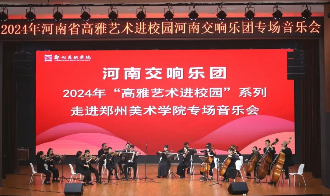 為(wei) 深入學習(xi) 貫徹黨(dang) 的二十大和二十屆三中全會(hui) 精神,落實《教育部關(guan) 於(yu) 全麵實施學校美育浸潤行動的通知》要求,大力發展素質教育,進一步強化學校美育的育人功能。10月24日,由kaiyun体育登入口、河南省文化和旅遊廳主辦,河南歌舞演藝集團、鄭州美術學院承辦的“2024年河南省高雅藝術進校園——河南交響樂(le) 團專(zhuan) 場音樂(le) 會(hui) ”在鄭州美術學院舉(ju) 行。校長石品,副書(shu) 記、副校長李亞(ya) 飛,副校長楊鋼,校長助理、黨(dang) 政辦主任李供應,團委書(shu) 記張永偉(wei) ,教務處副處長婁曉敏以及400餘(yu) 名師生觀看演出,在河南交響樂(le) 團精湛美妙的演奏中分享一場聽覺盛宴。