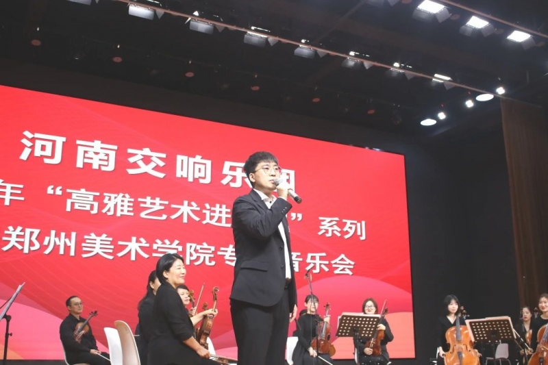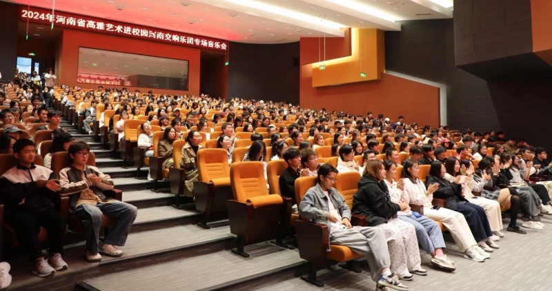 河南交響樂(le) 團走進鄭州美術學院,是高雅藝術進校園活動的具體(ti) 落實,對於(yu) 學校進一步強化公共藝術教育,完善“四位一體(ti) ”的公共藝術教育推進機製,推動校園文化建設,提升學生審美素養(yang) 等方麵都具有積極的意義(yi) 。本次演出活動成功舉(ju) 辦,不僅(jin) 為(wei) 師生開啟了一場精彩的經典音樂(le) 視聽盛宴,更是開展了一堂生動形象的音樂(le) 藝術鑒賞課和思政教育實踐課,促進了高雅藝術在師生間的心靈傳(chuan) 遞、精神共鳴。通過觀看演出,學校師生在領略河南交響樂(le) 團精彩演奏、精湛技藝的同時,也進一步激發了師生弘揚中華優(you) 秀傳(chuan) 統文化的責任感和使命感,更加堅定文化自信。