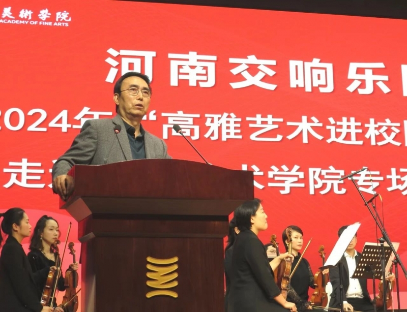 演出前,鄭州美術學院校長石品致辭,代表學校全體(ti) 師生對河南交響樂(le) 團各位藝術家的到來表示熱烈的歡迎和真摯的感謝。石品在致辭中表示:高雅藝術進校園活動是全麵推進素質教育、實施美育浸潤,加強學校藝術教育、提升當代大學生審美素養(yang) 的重要平台,也是我省高校藝術教育的重要內(nei) 容。河南交響樂(le) 團作為(wei) 中原地區享有盛名的專(zhuan) 業(ye) 院團,在國內(nei) 眾(zhong) 多音樂(le) 節和藝術節上充分展示了河南文化的魅力,我們(men) 期待這樣的藝術盛宴能在大學校園中常態化開展。希望同學們(men) 用心感受高雅藝術的魅力,激發對美好生活的向往和追求,在潛移默化中提升審美能力、提高藝術素養(yang) 、陶冶高尚情操。祝願高雅藝術的種子在校園裏生根發芽、茁壯成長,高雅藝術的芬芳永遠彌漫在我們(men) 的校園之中。