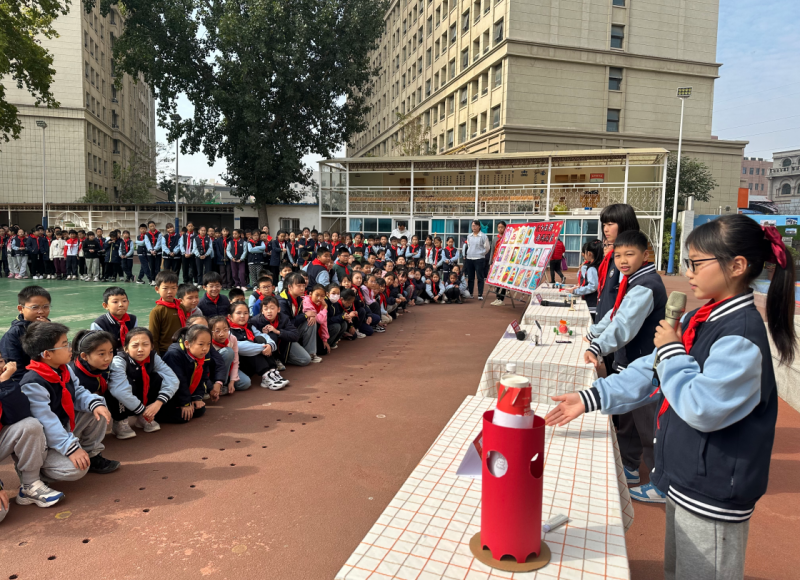 10月25日上午,少先隊員們(men) 在學校操場上展示出精彩紛呈的尋訪作品,不僅(jin) 有精美的尋訪記錄單,還有別出心裁的手抄報和作品講解,尋訪的少先隊員們(men) 也擔任起了“主持人”,用他們(men) 的聲音表達出對科技創新的思考和對偉(wei) 大祖國繁榮富強的祝福!