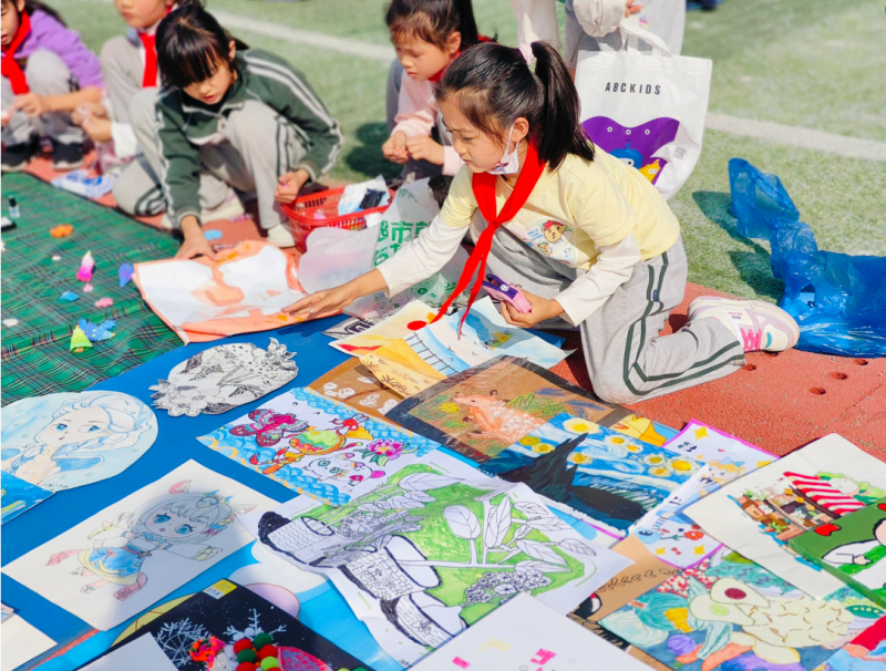 鄭州市金水區農(nong) 科路小學國基校區於(yu) 10月25日舉(ju) 辦了美術嘉年華遊園活動,引導學生在藝術實踐中提升藝術素養(yang) ,提高感受美、鑒賞美、表現美、創造美的能力。本次美術嘉年華遊園活動涵蓋了豐(feng) 富多彩的項目,共分為(wei) 主題觀影、靜態展、動態展三大主題。活動前夕,美術組老師帶領同學們(men) 提前布置美術作品展、美術體(ti) 驗區等五彩斑斕的展區及攤位,營造出十足的藝術氛圍。