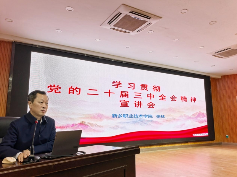 為(wei) 深入貫徹落實黨(dang) 的二十屆三中全會(hui) 精神,推動領悟全會(hui) 就進一步全麵深化改革、推進中國式現代化作出的戰略部署,10月23日下午,新鄉(xiang) 職業(ye) 技術學院黨(dang) 委書(shu) 記張林為(wei) 馬克思主義(yi) 學院、智能製造學院的全體(ti) 師生黨(dang) 員以《學習(xi) 貫徹黨(dang) 的二十屆三中全會(hui) 精神》為(wei) 題上黨(dang) 課。