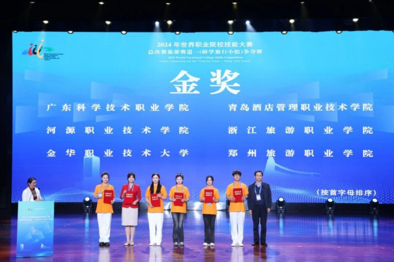 10月24日-10月26日,2024年世界職業(ye) 院校技能大賽總決(jue) 賽旅遊賽道—(研學旅行小組)爭(zheng) 奪賽在浙江旅遊職業(ye) 學院舉(ju) 行。本次比賽由教育部、文化和旅遊部等單位主辦,浙江省教育廳、浙江省文化廣電和旅遊廳承辦,浙江旅遊職業(ye) 學院協辦,吸引了全國高職院校63支隊伍236名選手同台競技。鄭州旅遊職業(ye) 學院旅遊管理學院院長李俊帶領藏思、柴蓓、楊璐、郭盼盼等多位教師指導李樹樹、何蕭蕭、周佳茜、喻舒薇四位同學組成的參賽團隊在比賽中斬獲金獎。