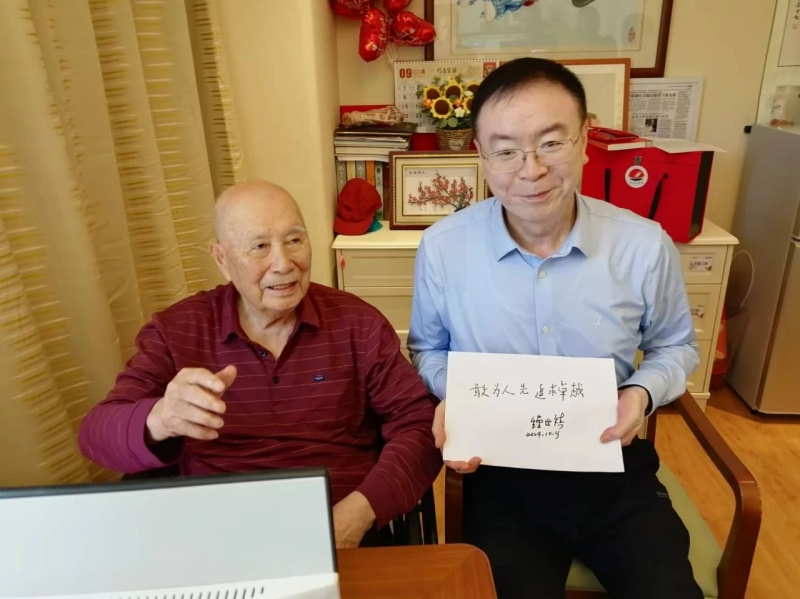天朗氣清,丹桂飄香。黃河科技學院醫學科學首席科學家、醫學學術委員會(hui) 主任,中國工程院資深院士鍾世鎮先生壽登期頤,百歲人瑞。為(wei) 綿表祝壽心意,景仰院士榮光,聽先生諄諄教導,受胡大白董事長和楊保成執行董事委派,10月19日,該校黨(dang) 委醫學工作部部長李喜強、青年教師田恒運前往廣州看望鍾世鎮院士,祝賀他百歲生日。