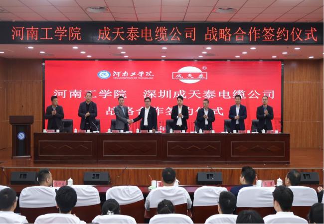 在頒獎儀(yi) 式上,河南工學院與(yu) 深圳成天泰電纜公司還簽署了校企戰略合作協議。