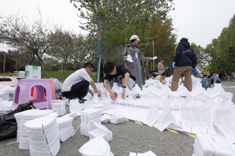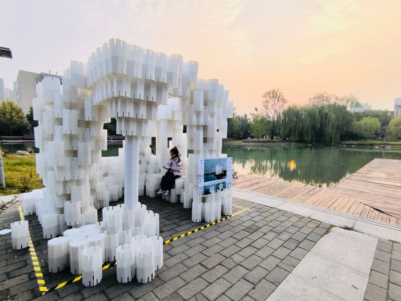 本次比賽以糧食倉(cang) 儲(chu) 建築“筒·藏”為(wei) 設計主題,以白色中空塑料板為(wei) 材料,進行形式構思及空間搭建,為(wei) 河南工業(ye) 大學中心景觀湖畔沿岸設計並搭建一組師生休息場所。希望通過比賽激發同學們(men) 對中國糧食文化的興(xing) 趣和熱愛,從(cong) 而保護好、傳(chuan) 承好、弘揚好博大精深的中國糧食文化。