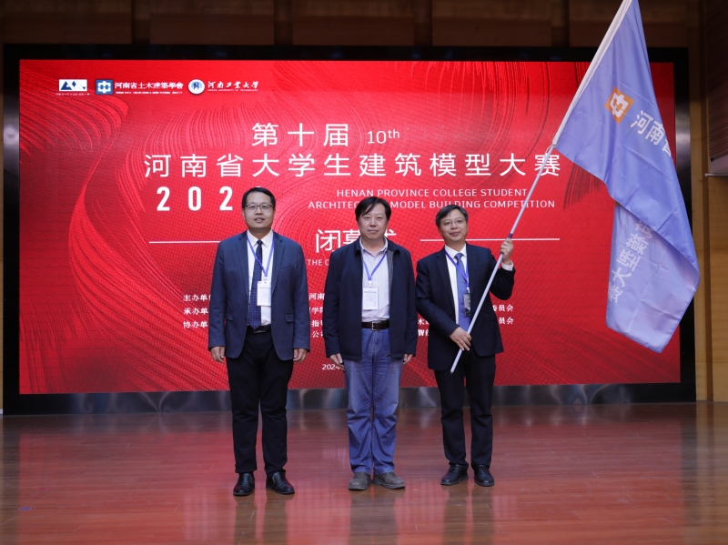 閉幕式上,河南省土木建築學會(hui) 秘書(shu) 長王愛菊教授致閉幕詞。她對本次比賽給予高度評價(jia) ,並向參會(hui) 的老師們(men) 和同學們(men) 致以誠摯的祝賀。最後,舉(ju) 行了賽旗交接儀(yi) 式,下屆大賽將由商丘師範學院承辦。