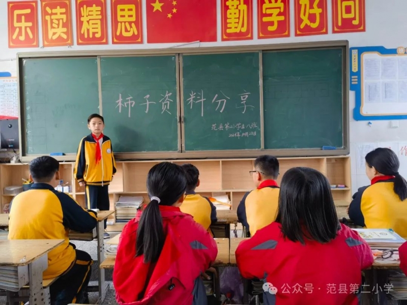 采摘前,班主任老師們(men) 深入淺出地講述了霜降節氣的由來、氣候特征和傳(chuan) 統習(xi) 俗,並引導同學們(men) 尊重自然,順應季節,感恩收獲。接著,老師們(men) 鼓勵同學們(men) 搜集采摘安全要領、采摘果實方法以及關(guan) 於(yu) 柿子的小調查,並分享給班級其他同學。