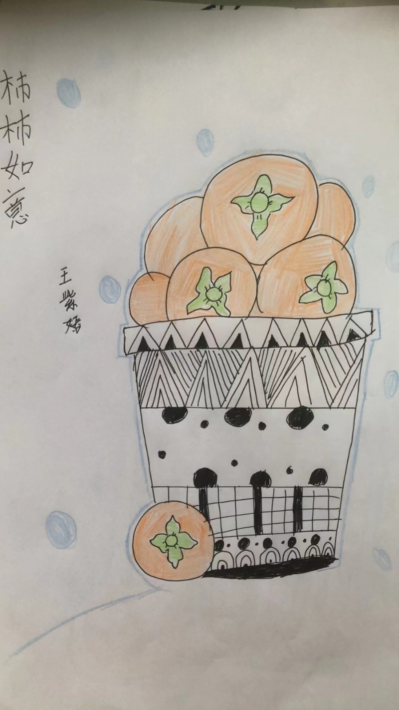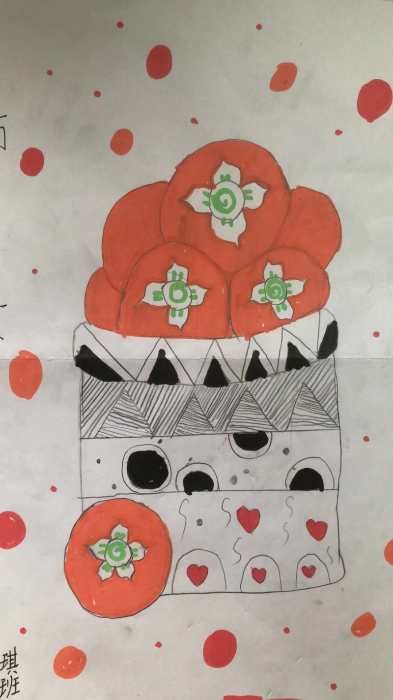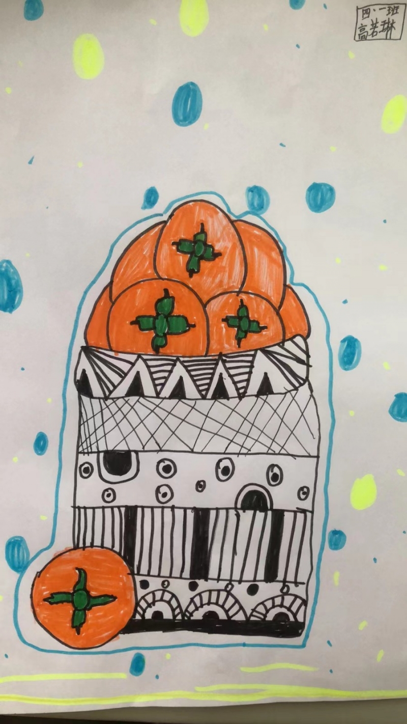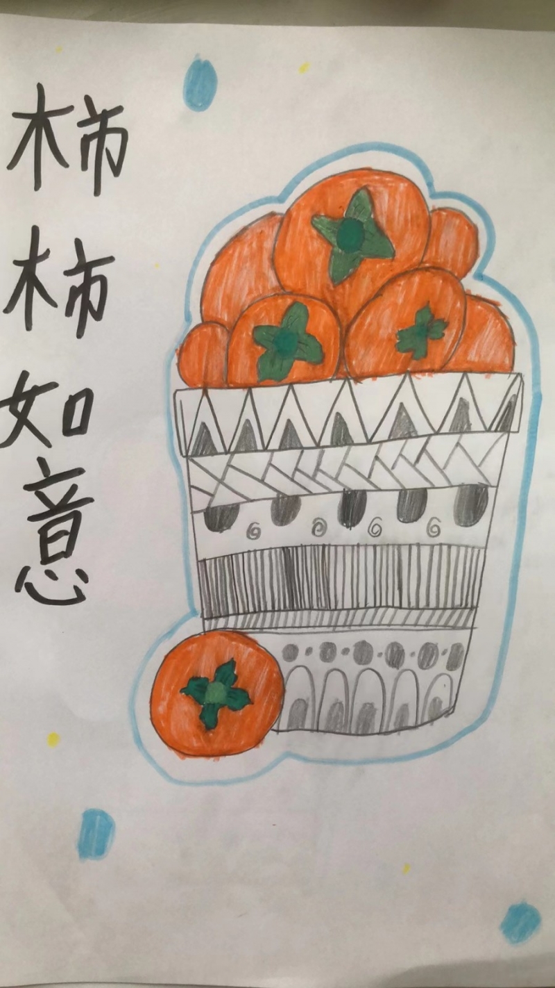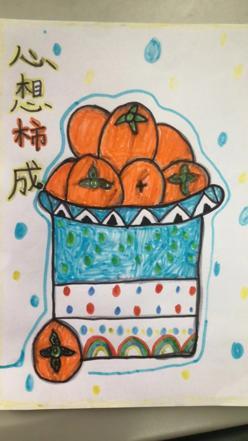 摘柿子活動結束後,同學們(men) 將大自然的靈感轉化為(wei) 藝術創作,用色彩描繪秋天的熱烈與(yu) 豐(feng) 盈,用豐(feng) 富的想象、獨特的方式描繪他們(men) 眼中柿子的樣子。每一個(ge) 柿子在孩子們(men) 的筆下都顯得栩栩如生——