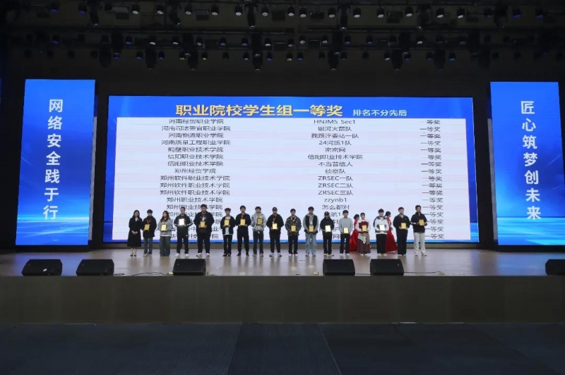 10月26日至27日,第八屆禦網杯信息安全大賽在鄭州舉(ju) 辦。該賽項由在kaiyun体育登入口主辦,河南省高等學校計算機教育研究會(hui) 、河南省教育信息化協會(hui) 、河南新一代信息技術職業(ye) 教育集團承辦,全國189所高校323支參賽隊經線上選拔後184支隊伍進入到線下決(jue) 賽環節。來自河南物流職業(ye) 學院信息工程學院的賈會(hui) 奇、胡傑、路憲康三名同學組成的參賽隊不畏強手、穩定發揮,獲高職高專(zhuan) 學生組“團體(ti) 一等獎”的優(you) 異成績,張婷婷、張秋菊兩(liang) 位老師獲“優(you) 秀輔導教師獎”。