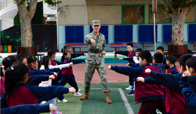 緊接著,軍(jun) 體(ti) 拳演示成為(wei) 了全場的焦點。戰士們(men) 動作嫻熟,力量感十足,為(wei) 學生們(men) 展示了軍(jun) 體(ti) 拳的衝(chong) 拳、踢腿、格擋等基本動作。在戰士的悉心指導下,學生們(men) 認真模仿,反複練習(xi) ,收獲滿滿。