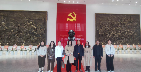 方婷婷首先帶領白彬一行來到馬克思主義(yi) 學院思想政治教育中心,參觀了中國革命史館、中國共產(chan) 黨(dang) 史館、大別山革命史館和列寧號故事館,回望了黨(dang) 領導全國各族人民英勇奮鬥、不怕犧牲,實現民族獨立、人民解放的光輝曆程,沉浸於(yu) 紅色文化之中,並留下珍貴的合影作為(wei) 紀念。