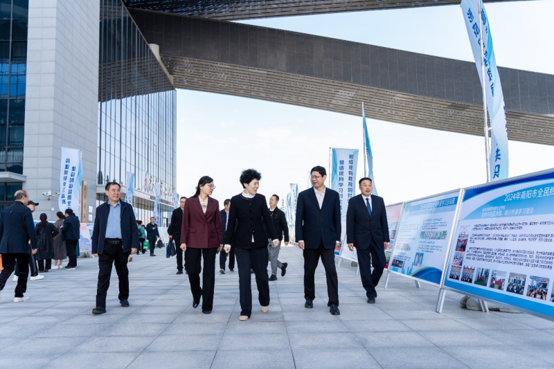 隨後,阿穎宣布2024年南陽市全民終身學習(xi) 活動周啟動。與(yu) 會(hui) 代表觀看南陽市全民終身學習(xi) 成果展。