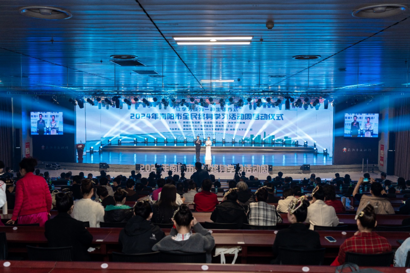 阿穎宣布2024年南陽市全民終身學習(xi) 活動周啟動。與(yu) 會(hui) 代表觀看全民終身學習(xi) 成果展。相關(guan) 部門、企業(ye) ,各縣市區教育行政部門、南陽市開放大學、社區教育學院(校)、市屬中等職業(ye) 學校、社會(hui) 群體(ti) ,“百姓學習(xi) 之星”、“終身學習(xi) 品牌項目”的300餘(yu) 位代表參加啟動儀(yi) 式。