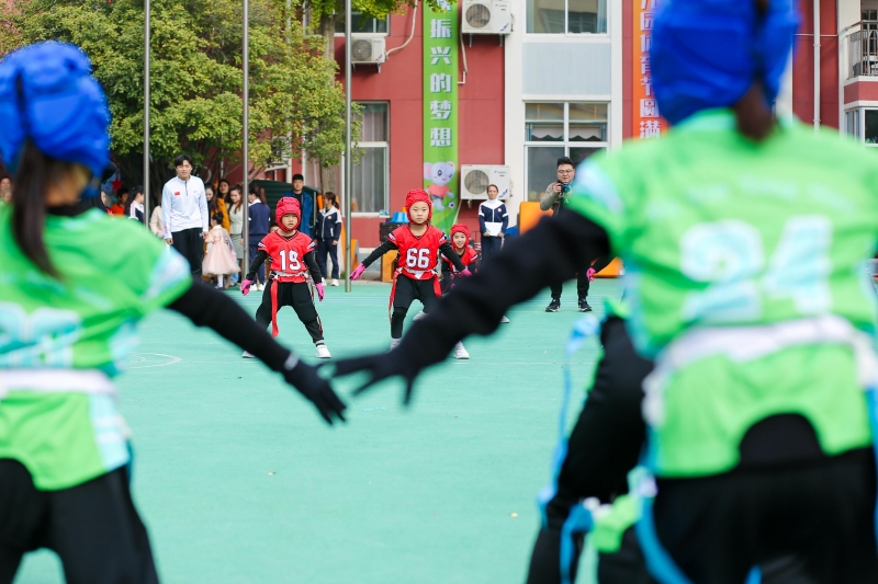 教師的“炫酷籃球”展示得到了觀眾(zhong) 的一致好評。橄欖球班的孩子們(men) 舉(ju) 行了精彩的橄欖球比賽,孩子們(men) 像小精靈一樣左跑右閃,傳(chuan) 球、拋接、突破、進攻,展示出良好的運動能力。