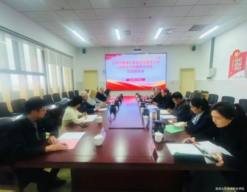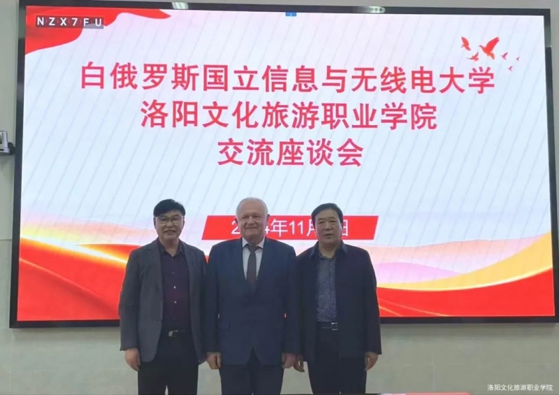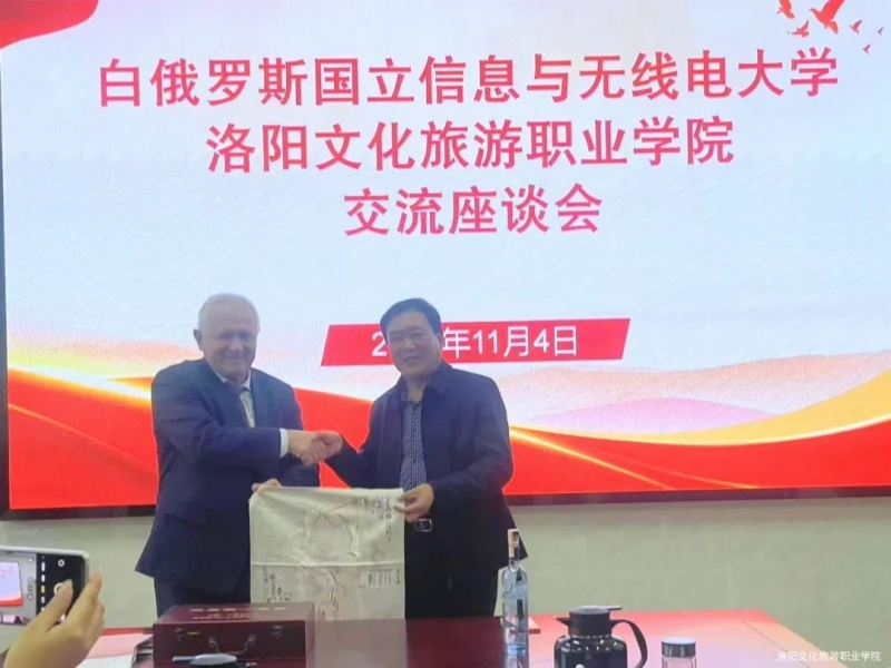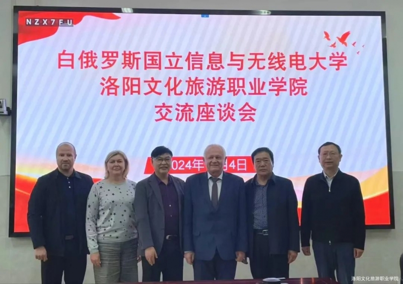 11月4日下午,洛陽文化旅遊職業(ye) 學院與(yu) 白俄羅斯國立信息與(yu) 無線電大學在圖書(shu) 館會(hui) 議室舉(ju) 行交流座談會(hui) 。白俄羅斯國立信息與(yu) 無線電大學副校長季克·謝爾蓋·康斯坦汀諾維奇院士,白俄羅斯國立信息與(yu) 無線電大學繼續教育學院副院長盧費蘿娃·柳德米拉·德米特裏耶芙娜教授等一行,洛陽文化旅遊職業(ye) 學院黨(dang) 委書(shu) 記介建中,黨(dang) 委副書(shu) 記、校長張家森,黨(dang) 委委員、副校長韓向陽及相關(guan) 部門負責人出席座談會(hui) 。