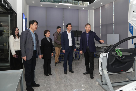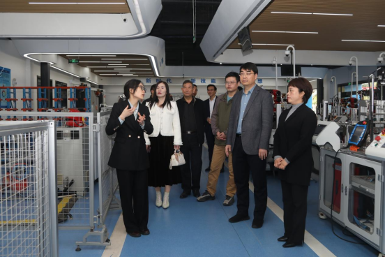 李政一行在學校相關(guan) 部門負責人的陪同下,依次參觀了鄭州職業(ye) 技術學院汽車綜合實訓中心、工業(ye) 機器人工程技術中心、超硬材料及製品工程技術中心、虛擬現實工程技術中心、生命健康研究院等國家和省市實訓科研平台,對鄭州職業(ye) 技術學院辦學條件、產(chan) 教融合、教學改革等工作進行實地考察調研。