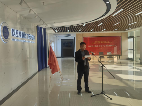 11月5日上午,鶴壁能源化工職業(ye) 學院與(yu) 河南喜馬拉雅數碼技術有限公司共建“數智應用校企研發中心”簽約暨揭牌儀(yi) 式在學院綜合辦公樓二樓展廳隆重舉(ju) 行。河南喜馬拉雅數碼技術有限公司總經理唐永強,鶴壁能源化工職業(ye) 學院黨(dang) 委委員、副校長何敏出席儀(yi) 式,相關(guan) 部門、學院負責同誌參加了會(hui) 議,會(hui) 議由機電工程係賈國華老師主持。