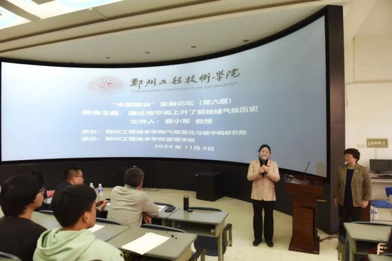 11月6日,由鄭州工程技術學院氣候變化與(yu) 碳中和研究院主辦,鄭州工程技術學院管理學院承辦的“中原碳穀發展”係列論壇(第六期)在鄭州工程技術學院博識樓成功舉(ju) 辦。出席論壇的領導和專(zhuan) 家有鄭州工程技術學院校長白仲虎,鄭州工程技術學院學術副校長薑冬梅,哥倫(lun) 比亞(ya) 大學教授、鄭州工程技術學院客座教授袁小軍(jun) ,氣候變化與(yu) 碳中和研究院、鄭州工程技術學院客座教授劉鵬利、劉慶強,氣候變化與(yu) 碳中和研究院、鄭州工程技術學院客座副教授張紅梅、耿潔。活動由鄭州工程技術學院管理學院黨(dang) 總支副書(shu) 記張彩虹主持。300餘(yu) 名鄭州工程技術學院師生現場聆聽報告。鄭州工程技術學院校長白仲虎為(wei) 客座教授袁小軍(jun) 教授頒發聘書(shu) 並發表講話。白校長首先對袁小軍(jun) 教授的到來表示歡迎和感謝。他指出,“中原碳穀發展”論壇旨在深入探討碳中和背景下的區域發展戰略,促進學術交流與(yu) 合作。他強調,碳中和對於(yu) 全球氣候變化的重要性,並指出中原地區在碳穀建設中的潛力與(yu) 挑戰。他提出,鄭州工程技術學院將致力於(yu) 打造碳中和研究與(yu) 教育的高地,為(wei) 中原地區乃至全國的碳減排和綠色發展貢獻力量。
