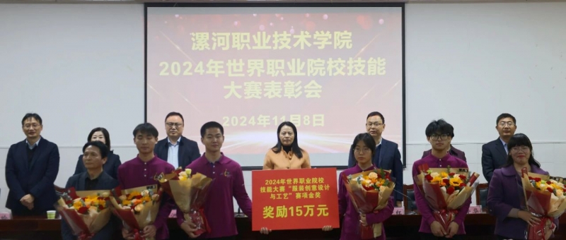 近日,漯河職業(ye) 技術學院代表隊勇奪2024年世界職業(ye) 院校技能大賽總決(jue) 賽爭(zheng) 奪賽——高職組輕工紡織賽道二(服裝創意設計與(yu) 工藝組)賽項金獎,11月8日上午,漯河職業(ye) 技術學院學院組織召開表彰大會(hui) ,對在2024年世界職業(ye) 院校技能大賽總決(jue) 賽爭(zheng) 奪賽獲獎師生進行表彰。院長邢淑婕出席會(hui) 議並向獲獎團隊頒獎,學院領導班子成員,各行政處室負責同誌,各係部主任、教學主任、專(zhuan) 業(ye) 負責人,大賽獲獎學生及指導老師參加大會(hui) 。黨(dang) 委委員、副院長朱曉紅主持會(hui) 議,黨(dang) 委委員、副院長程傳(chuan) 蕊宣讀《關(guan) 於(yu) 表彰2024年世界職業(ye) 院校技能大賽“服裝創意設計與(yu) 工藝”賽項金獎獲得者的決(jue) 定》。