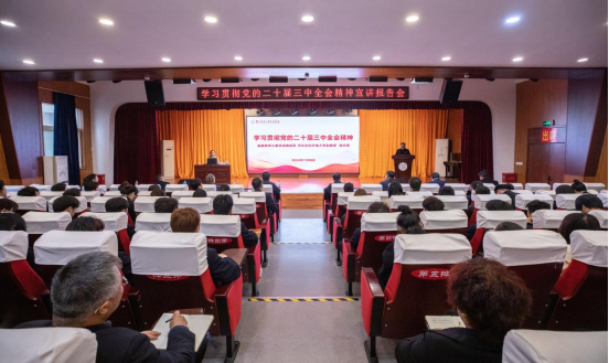 為(wei) 深入學習(xi) 貫徹黨(dang) 的二十屆三中全會(hui) 精神,引導全校黨(dang) 員師生把思想和行動統一到全會(hui) 精神上來,把智慧和力量凝聚到學校高質量發展的各項事業(ye) 之中,11月8日上午,學習(xi) 貫徹黨(dang) 的二十屆三中全會(hui) 精神省委教育工委宣講團成員、華北水利水電大學馬克思主義(yi) 學院謝文娟副教授為(wei) 鄭州信息工程職業(ye) 學院師生作題為(wei) 《擘畫新時代改革發展新藍圖--深入學習(xi) 貫徹黨(dang) 的二十屆三中全會(hui) 精神》的專(zhuan) 題報告,校黨(dang) 委書(shu) 記郭中平,黨(dang) 建指導員、黨(dang) 委副書(shu) 記劉飛翔,黨(dang) 委副書(shu) 記、副校長陶熙文,黨(dang) 委副書(shu) 記符水龍、王偉(wei) 超,副校長任濤燕及職能部門負責人、教師黨(dang) 員代表、學生代表等共計200餘(yu) 人參加學習(xi) 。報告會(hui) 由黨(dang) 委副書(shu) 記符水龍主持。