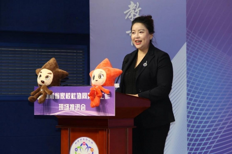 11月17日,河南省家校社協同育人工作現場推進會(hui) 於(yu) 新鄉(xiang) 盛大啟幕。省教育廳關(guan) 工委常務副主任崔炳建,省教育廳關(guan) 工委副主任董丞明、李敏,省教育廳關(guan) 工委副秘書(shu) 長王源,新鄉(xiang) 市教育局副局長蘇紹彬,新鄉(xiang) 市教育局關(guan) 工委執行主任馮(feng) 樹正、毋靜中等,以及來自省內(nei) 其他有關(guan) 部門的領導專(zhuan) 家、教師代表來到新鄉(xiang) 市實驗小學,觀摩學校家校社協同育人工作開展情況。