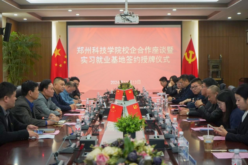 11月13日,鄭州科技學院在學校第一會(hui) 議室舉(ju) 辦校企合作座談暨實習(xi) 就業(ye) 基地簽約授牌儀(yi) 式。學校黨(dang) 委委員、副校長宋誌豪,招生就業(ye) 處處長湯德錢及部分學院領導班子成員出席簽約儀(yi) 式。儀(yi) 式由鄭州科技學院新科學院黨(dang) 支部書(shu) 記李海濱主持。