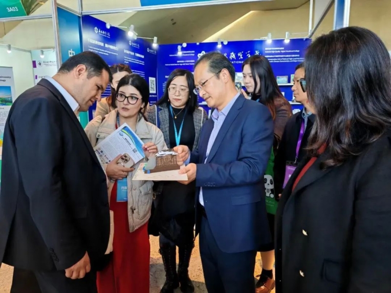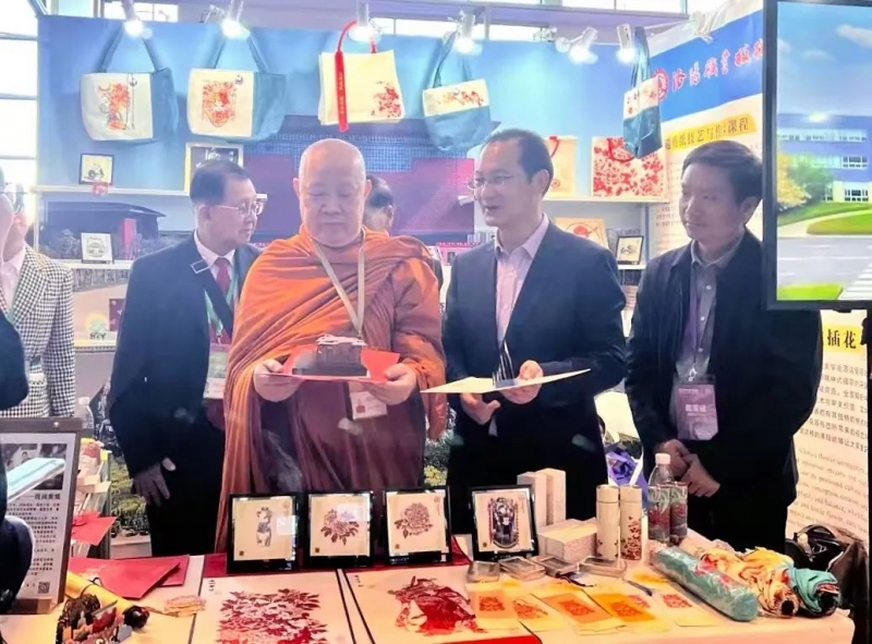 會(hui) 議期間,洛陽職業(ye) 技術學院作為(wei) 河南省三所受邀參加中國教育交流展的學校之一,展出了非遺剪紙、中藥茶飲等特色作品,全麵展現了學校在非遺傳(chuan) 承、優(you) 秀傳(chuan) 統文化創新發展等方麵所取得的成果,吸引了眾(zhong) 多外方嘉賓參觀。李保安與(yu) 外方嘉賓進行了深入交流,詳細介紹了近年來學校在國際交流、非遺傳(chuan) 承等方麵所取得的成績。