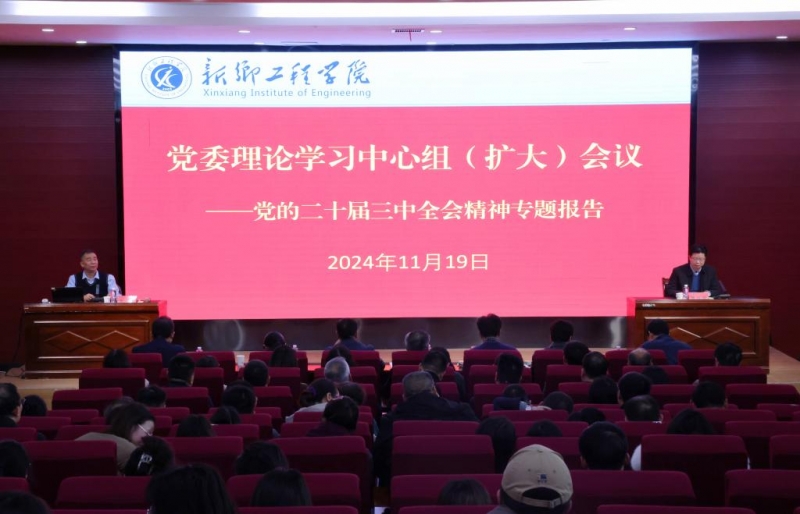 11月19日,新鄉(xiang) 工程學院在學院樓報告廳舉(ju) 行黨(dang) 委理論學習(xi) 中心組(擴大)學習(xi) 會(hui) 。會(hui) 議邀請省委黨(dang) 的二十屆三中全會(hui) 精神宣講團成員、河南師範大學馬克思主義(yi) 學院黨(dang) 委書(shu) 記、院長蔣占峰教授,就深入學習(xi) 貫徹黨(dang) 的二十屆三中全會(hui) 精神作輔導報告。校黨(dang) 委理論學習(xi) 中心組成員、副處級以上幹部及師生代表300餘(yu) 人參加會(hui) 議。