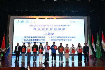 “一帶一路”暨金磚國家技能發展與(yu) 技術創新大賽是2017年金磚國家最高領導人會(hui) 晤籌備委員會(hui) 認可、經中華人民共和國外交部備案、金磚國家工商理事會(hui) 批準的國際大賽,是中國高等教育學會(hui) 發布的《2023全國普通高校大學生競賽分析報告》競賽目錄中的國家級競賽之一。此次大賽緊緊圍繞全科醫生人才隊伍建設,對標國家執業(ye) 助理醫師考試內(nei) 容及形式,按照崗位實際工作流程,檢驗參賽學生的技能水平、臨(lin) 床思維、專(zhuan) 業(ye) 綜合能力和職業(ye) 素養(yang) 。自競賽信息發布以來,漯河醫學高等專(zhuan) 科學校製定詳細的備賽方案,組建指導教師和學生團隊,多次邀請校內(nei) 外專(zhuan) 家集中對參賽學生進行指導,備賽過程中注重技能操作訓練、理論知識強化以及心理素質鍛煉,不斷強化學生的實踐技能和綜合能力,加深學生對理論知識的理解,養(yang) 成良好的職業(ye) 素養(yang) 。