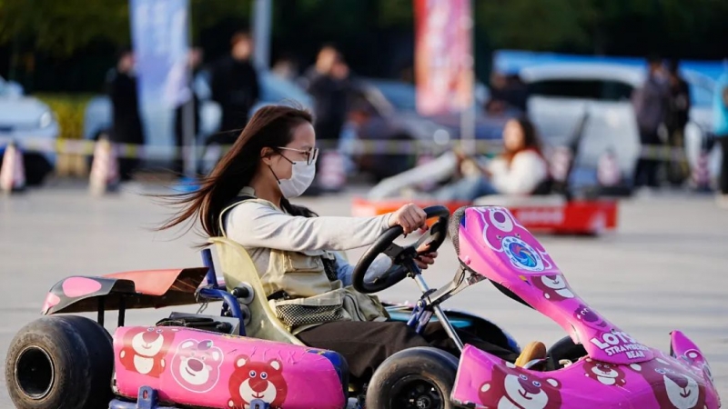 展示環節後,參會(hui) 學生親(qin) 子體(ti) 驗卡丁車駕駛