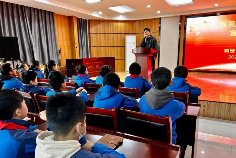 為(wei) 深入開展國防擁軍(jun) 教育,11月20日,鶴壁市致遠小學開展“退役軍(jun) 人展風采 紅色文化進校園”宣講活動,以生動的愛國主義(yi) 教育在學生心中埋下國防擁軍(jun) 的紅色種子。