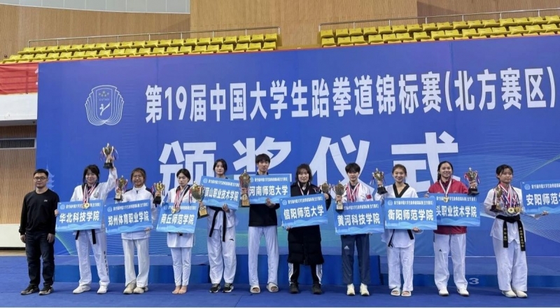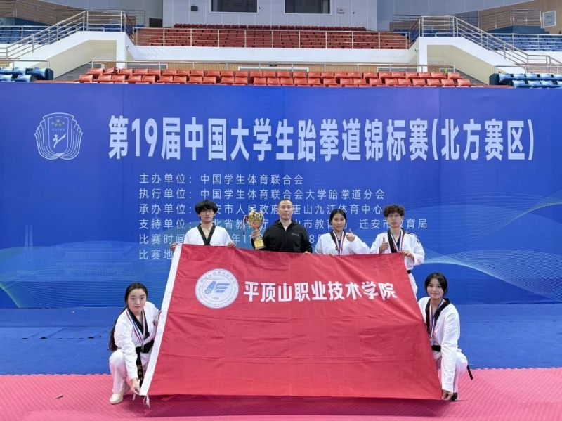 11月13日至19日,由中國大學生體(ti) 育協會(hui) 主辦、中國學生體(ti) 育聯合會(hui) 大學生跆拳道分會(hui) 執行的“第19屆中國大學生跆拳道錦標賽”在河北遷安九江體(ti) 育中心隆重舉(ju) 行。平頂山職業(ye) 技術學院跆拳道代表隊在賽事中斬獲1金、1銀、2銅、一個(ge) 第五名,丙B組女子團體(ti) 總分第一名的驕人成績再次登頂!