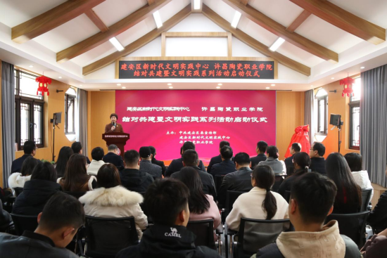為(wei) 深入學習(xi) 貫徹習(xi) 近平新時代中國特色社會(hui) 主義(yi) 思想和黨(dang) 的二十大精神,充分發揮高校在新時代文明實踐中心建設中的積極作用,推動校地資源共享、陣地共建,實現新時代文明實踐活動與(yu) 學校發展同頻共振,11月20日上午,許昌陶瓷職業(ye) 學院與(yu) 建安區新時代文明實踐中心在建安書(shu) 院舉(ju) 辦結對共建暨文明實踐係列活動啟動儀(yi) 式。