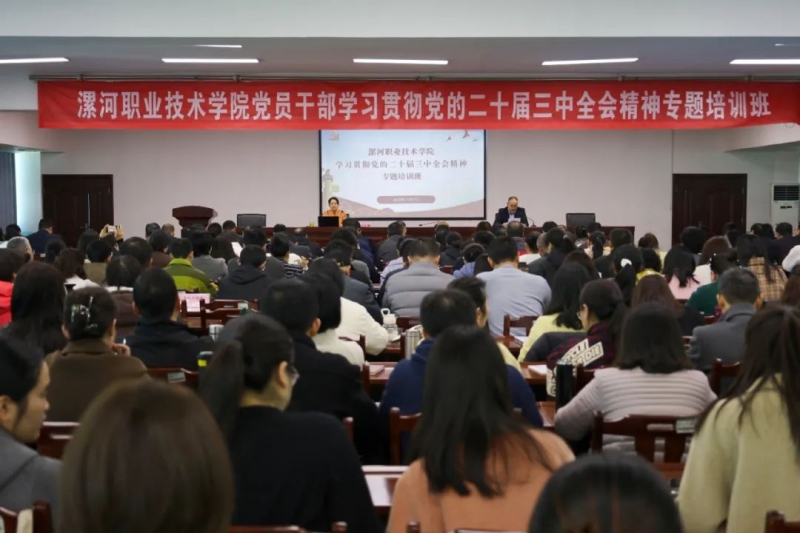 為(wei) 深入學習(xi) 貫徹習(xi) 近平新時代中國特色社會(hui) 主義(yi) 思想,全麵貫徹落實黨(dang) 的二十屆三中全會(hui) 精神,11月21日上午,漯河職業(ye) 技術學院舉(ju) 辦學習(xi) 貫徹黨(dang) 的二十屆三中全會(hui) 精神專(zhuan) 題培訓班開班儀(yi) 式。學院黨(dang) 委副書(shu) 記、院長邢淑婕出席開班儀(yi) 式,並以《學習(xi) 貫徹黨(dang) 的二十屆三中全會(hui) 精神 促進職業(ye) 教育規律發展》為(wei) 題,圍繞“從(cong) 政治上看教育”、“從(cong) 民生上抓教育”、“從(cong) 規律上辦教育”三個(ge) 方麵為(wei) 參會(hui) 人員作專(zhuan) 題報告。黨(dang) 委副書(shu) 記薛存心主持開班儀(yi) 式。學院領導班子成員及副科級以上領導幹部、全體(ti) 黨(dang) 員參加。