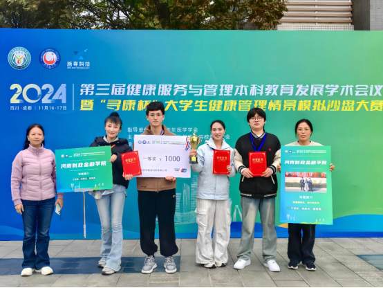 11月16日至17日,由中國老年醫學會(hui) 指導,中國老年醫學學會(hui) 院校教育分會(hui) 主辦、成都醫學院承辦的第三屆健康服務與(yu) 管理本科教育發展學術會(hui) 議暨“尋康杯”大學生健康管理情景模擬沙盤大賽在成都醫學院成功舉(ju) 辦。由河南財政金融學院體(ti) 健學院2022級健康服務與(yu) 管理專(zhuan) 業(ye) 王佳乾、祝鮮慶、謝海燕三名學生組成的“體(ti) 健康行”團隊在大賽中順利奪得一等獎。這也是繼第二屆“尋康杯”大學生健康管理情景模擬沙盤大賽後,河南財政金融學院再獲此項殊榮。