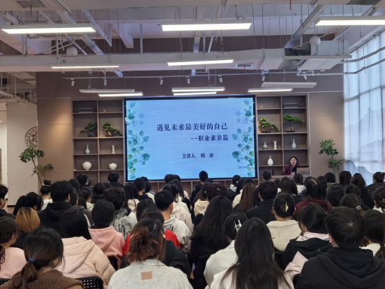 11月20日下午,開封文化藝術職業(ye) 學院文心書(shu) 院舉(ju) 辦“遇見未來最美好的自己”職業(ye) 素養(yang) 主題教育講座。講座由科研外事處處長韓冰教授主講,工藝美術學院、初等教育學院的百餘(yu) 名學生參加。