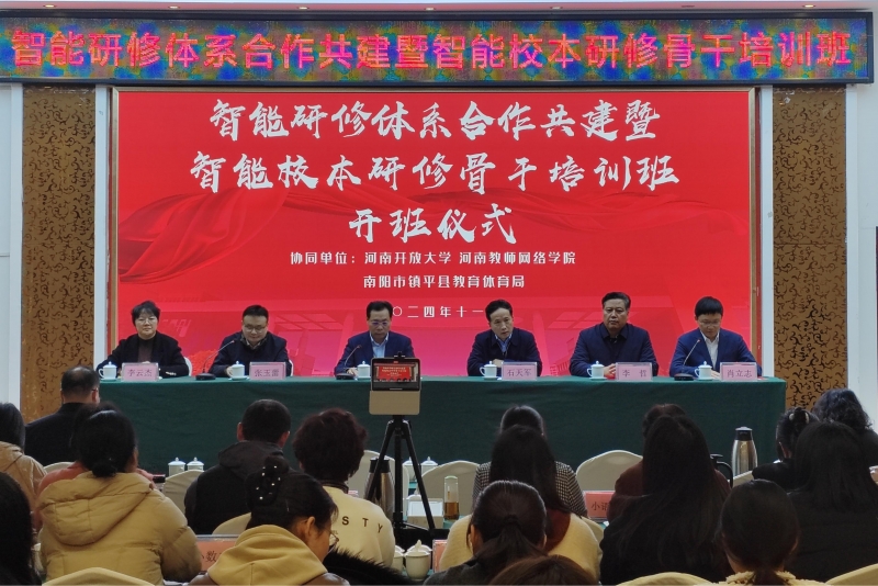11月20日,鎮平縣教體(ti) 局與(yu) 河南開放大學舉(ju) 行智能研修體(ti) 係合作共建項目簽約儀(yi) 式,在教育數智化領域攜手展開新合作,推進縣域教師智能研修體(ti) 係建設。河南開放大學黨(dang) 委副書(shu) 記王繼東(dong) ,鎮平縣委常委、宣傳(chuan) 部部長、縣政府副縣長石天軍(jun) ,河南開放大學河南教師網絡學院主任肖立誌,南陽市教育局教師工作科科長張玉蕾,鎮平縣教體(ti) 局一級主任科員李哲,鎮平縣教師進修學校校長李雲(yun) 傑出席會(hui) 議。鎮平縣玉都實驗學校、雪楓實驗學校、石佛寺鎮中心小學等3所基地學校校長,校本研修指導團隊、學科骨幹團隊成員共66人參加活動。