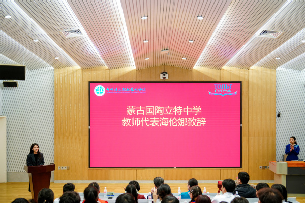 蒙古國陶立特中學教師海倫(lun) 娜在致辭中表示,參加“漢語橋”來華體(ti) 驗交流,對所有蒙古國師生來說是一次特殊的經曆。尤其是學生初次接觸中國“複興(xing) 號”高鐵,讓他們(men) 對中國高鐵技術發展有了新的認識。學校組織的高鐵模擬駕駛、地鐵實訓體(ti) 驗、非遺文化參觀等活動,給他們(men) 留下了難忘的回憶。希望兩(liang) 校在漢語教育和文化交流方麵能進一步開展合作。