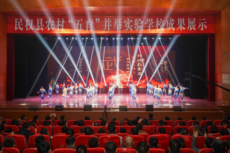 11月21日下午,民權縣農(nong) 村“五育”並舉(ju) 實驗學校成果展示暨匯報演出在民權縣藝術中心舉(ju) 行。縣委書(shu) 記王靜嫻,縣人大常委會(hui) 主任周燕,縣委常委、統戰部部長、副縣長李天樁等出席活動並觀看匯報演出。