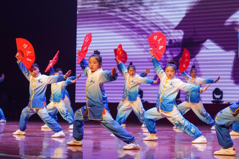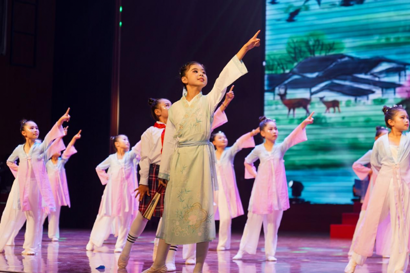 演出開始後,10所農(nong) 村“五育”並舉(ju) 實驗學校的呼啦圈操、花樣跳繩、古詩韻律操、毛主席詩詞朗誦、讀唐詩舞蹈等形式多樣的精彩節目相繼登台。天真可愛的孩子們(men) 飽含激情盡情舞動、真情演繹,以過硬的綜合素質贏得了與(yu) 會(hui) 人員的好評和讚譽。