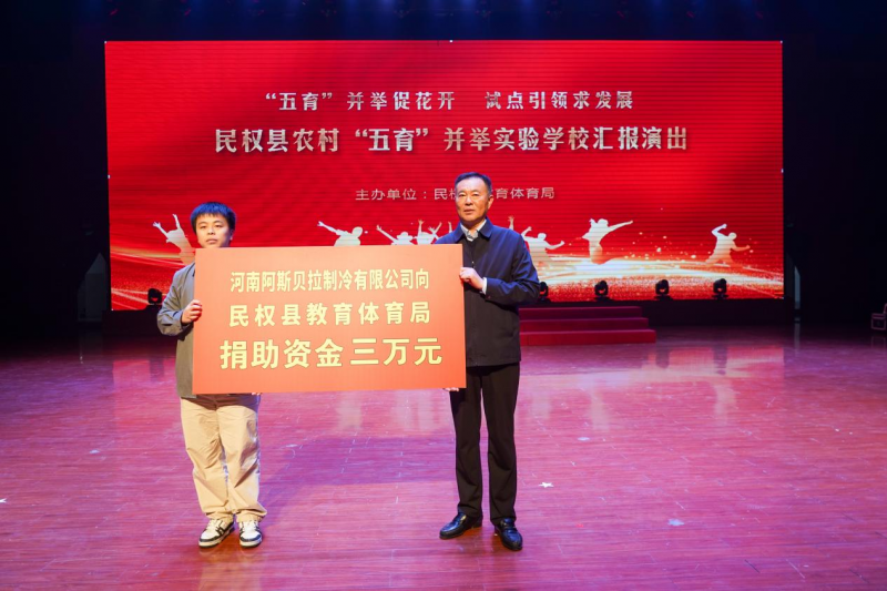 活動中,愛心企業(ye) 河南阿斯貝拉製冷科技有限公司、香雪海電器集團有限公司、中國人壽保險股份有限公司民權支公司還分別向民權縣教體(ti) 局捐贈助學金三萬(wan) 元,為(wei) 民權縣教育事業(ye) 的持續發展注入力量。