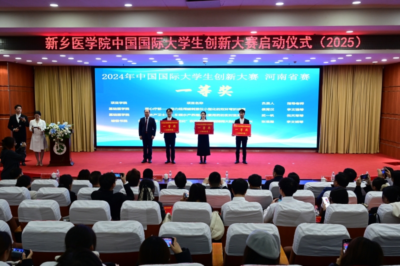 近日,新鄉(xiang) 醫學院舉(ju) 行2025年中國國際大學生創新大賽啟動儀(yi) 式。儀(yi) 式上宣讀了新鄉(xiang) 醫學院2024年中國國際大學生創新大賽獲獎集體(ti) 和個(ge) 人的表彰決(jue) 定,新鄉(xiang) 醫學院校長王福俤和相關(guan) 部門負責人為(wei) 獲獎集體(ti) 和個(ge) 人頒發了獎牌和獎金。