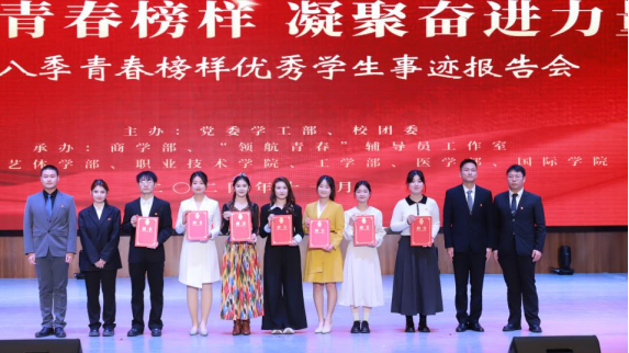 11月21日,由黨(dang) 委學工部、校團委主辦,商學部、領航青春輔導員工作室承辦,各院部協辦的第八季青春榜樣優(you) 秀學生事跡報告會(hui) 在藝術中心隆重舉(ju) 行。黨(dang) 委學工部、校團委等職能部門負責人、各教學單位分黨(dang) 委(副)書(shu) 記、輔導員代表、學生代表以及派駐教師等400餘(yu) 人參加報告會(hui) 。
