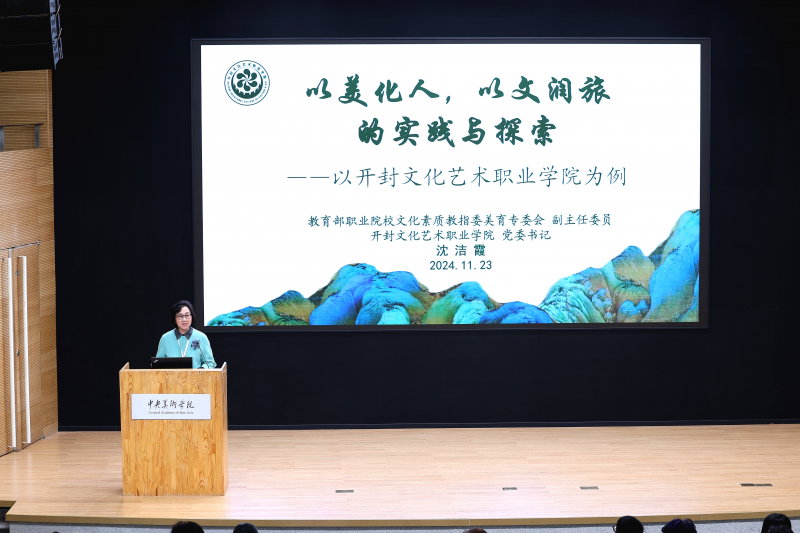 11月23日,開封文化藝術職業(ye) 學院黨(dang) 委書(shu) 記、教育部職業(ye) 院校文化素質教指委美育專(zhuan) 委會(hui) 副主任委員沈潔霞受中國教育發展戰略學會(hui) 、中國工業(ye) 合作協會(hui) 的邀請,赴京出席“首屆全國高校及高職院校藝術教育與(yu) 文旅產(chan) 業(ye) 融合發展學術論壇”並作大會(hui) 主題報告。