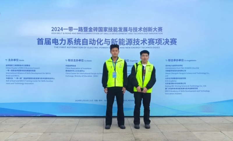 11月22日,2024一帶一路暨金磚國家技能發展與(yu) 技術創新大賽首屆電力係統自動化與(yu) 新能源技術賽項決(jue) 賽在河南鄭州舉(ju) 行,來自全國的70支本專(zhuan) 科隊伍同台競技。濮陽石油化工職業(ye) 技術學院機電學院學生張天帥、解宏偉(wei) 、齊心誠、於(yu) 航組成的兩(liang) 支隊伍,憑借出色的專(zhuan) 業(ye) 技能和卓越的團隊協作精神,分獲全國三等獎和優(you) 勝獎。