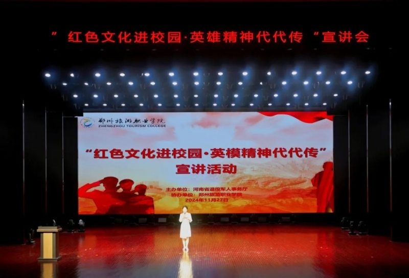 為(wei) 深入貫徹落實黨(dang) 的二十屆三中全會(hui) 精神,推動鄭州旅遊職業(ye) 學院傳(chuan) 承紅色基因和黨(dang) 建引領工作走深走實,引導青年學子攜筆從(cong) 戎。11月27日下午,鄭州旅遊職業(ye) 學院特邀河南省退役軍(jun) 人事務廳宣講團走進校園,在藝術中心舉(ju) 辦了“紅色文化進校園·英模精神代代傳(chuan) ”宣講活動。